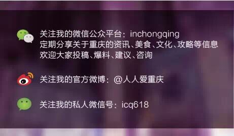 功能介绍 重庆最受关注自媒体 | 山水之都,云河之际一座城.每天推送重庆地区好看好吃好玩好耍的精美图文;我还是全面的微信生活小助手,望爱重庆的你们关注和喜欢!我的新浪微博:@人人爱重庆 ,人人网:「重庆」官方主页,个人微信:icq618