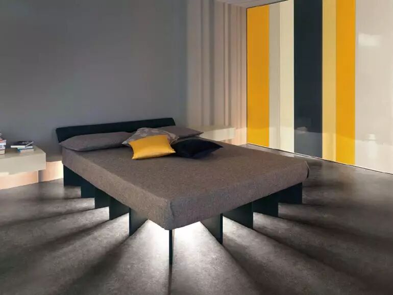这款底部发光的光束床(Beam Bed)由设计师Ewan Robertson为LagoStudio设计,设计灵感来源于太阳。床的底架由木板构成,木板的摆放位置经过精心设计,从而在加入灯光系统之后创造出特殊的光影效果。