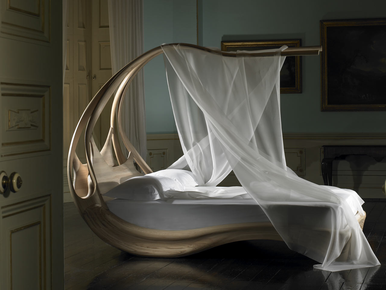 这款优雅的Enignum天蓬床由爱尔兰设计师Joseph Walch设计。丝质天蓬可根据季节随意搭配。