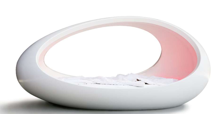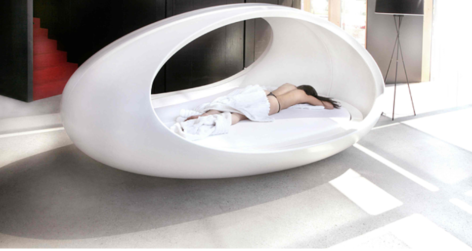 这张外形像一颗鸡蛋的Lomme床由列支敦士登的着名设计品牌Cycle 13在2008年的100% Design London中推出,采用声光疗法,帮助人们睡得更好。