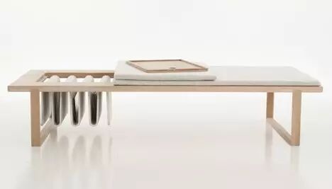 2.挪威设计工作室Noidoi设计了一款多功能长椅,除了可躺卧外,这个作品还包含了一个杂志架和托盘。