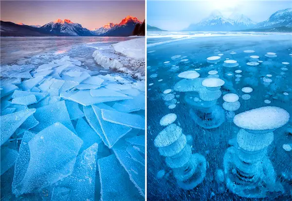 冰湖,气泡也凝住了。。。