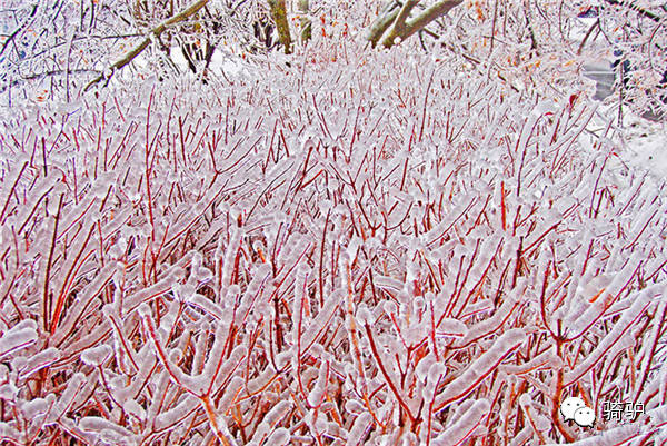 冻雨后,水被凝固在叶面上形成的冰叶。。。
