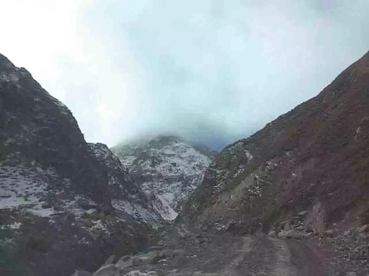 进入矿区,海拔3600米,山顶常年积雪,11月就初己下雪!