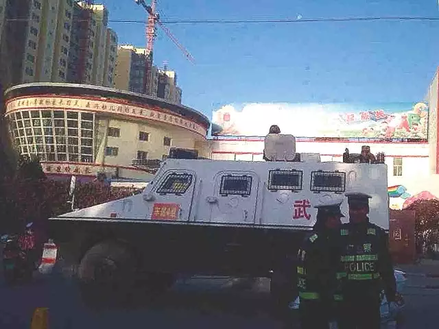 一大早开车去矿山,途经小学,但见门口防暴车维护学生安全!