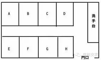 你要去一个布局如下图的公共卫生间,里面没有一个人,那么凭直觉你会选择去哪个小间方便呢?