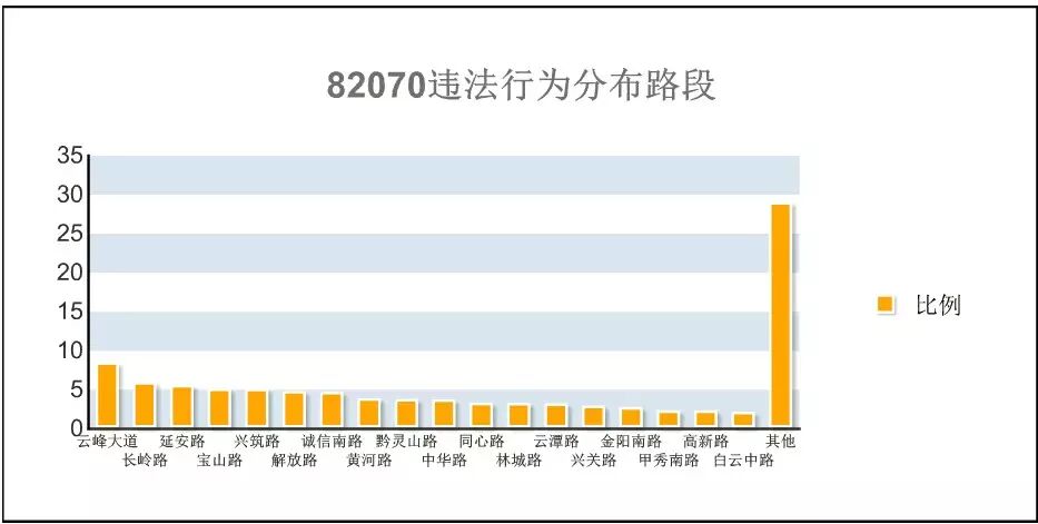 贵阳市共1124条道路,仅仅这18条路段占此违法行为的的71.08%,请注意路面上的标线,82070的具体违法表现是下图