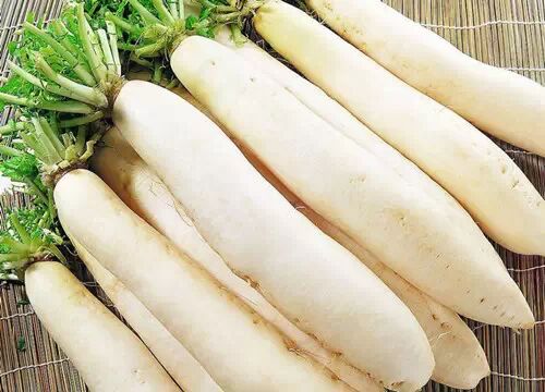 白萝卜中含有大量膳食纤维,维他命C、B1、B2,可促进胃肠蠕动、顺利排便,弥补肉食缺乏纤维素的不足。日本料理店常常在炸物的沾酱中加入萝卜泥,可用来缓解过食肉食后导致的反胃、泛酸、恶心、口干舌燥等等。白萝卜的辛辣味因其含有芥子油,能促进消化液的分泌,增进食欲。