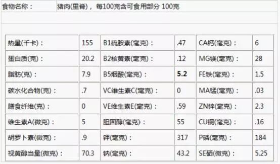 注意,必须说明一下,健美上几乎不摄入饱和脂肪,所以我们都是以精瘦肉为主,营养成分表也已精瘦肉为主