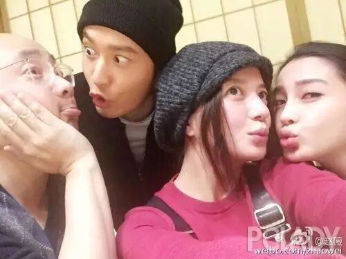 这是赵薇在微博发出的一张照片,图片中徐峥、黄晓明、赵薇、Angelababy,四人表情相当搞怪,很多网友说为什么他们四个人会在一起呢?你想想嘛,除了工作需求,黄晓明当然要带自己的女朋友闯入自己的朋友圈啦!
