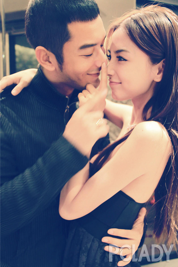 其实再此之前二人还拍摄过甜蜜的情侣写真照,照片中Baby身穿黑色吊带连衣裙,和穿着黑色夹克的黄晓明相当般配。