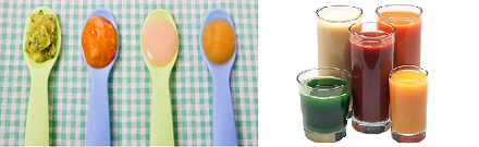答:六个月的宝宝吃辅食主要是为了学习适应一种新的吃饭方式,营养主要还是从奶中摄取。所以,同样是吃到水果和蔬菜里的营养,我们给宝宝吃果泥菜泥营养更全面,还能让宝宝练习用小牙床咀嚼。等到宝宝再大点,饮食结构里可以出现饮料这个东西的时候再说吧。