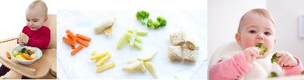 答:按照上表所说,7-9个月就可以开始了――“让宝宝拿着条状或指状食物自己吃”,英文所谓的finger food。用大白话说,不要等宝宝能用勺子,宝宝能用手抓着吃的时候,就开始吧!抓食物,也是一个用小手探索不同手感、温度,练习精细动作的机会,不要错过哦!