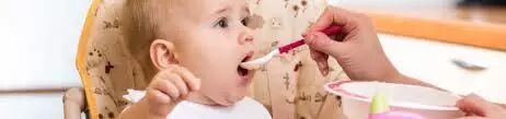 当食物送到嘴边,宝宝会张口吃进去,而不是用舌头顶出来