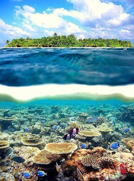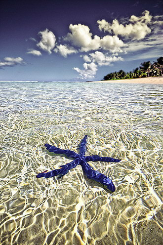蓝海星,法属波利尼西亚塔希提岛,清澈见底的海水,好干净的美