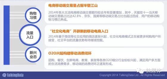 TalkingData数据平台部总监陶京琪表示,报告数据都是基于TalkingData覆盖的10亿移动设备,所有的研究结论也都是用户的日常行为的发现。而根据大数据自身价值的挖掘,这10亿移动终端设备清晰的告诉我们2014年移动互联网的发展。