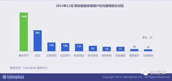 在对各类移动应用进行整体盘点后,发现移动即时通信依然是网民的首选,而游戏的日均使用时长最高,可见娱乐需求地位稳固。