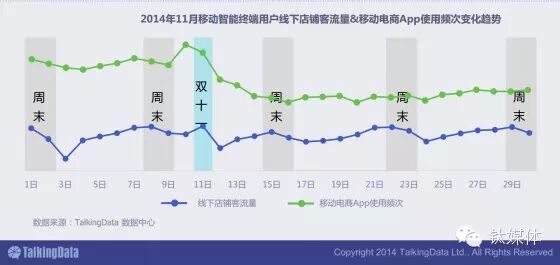 今年移动电商的火热无需多说,无论是从京东的“6?18”大促销,还是年尾的双11,移动互联网电商已经非常火热。数据显示,在日常生活中,移动电商不论是周六还是周日,都是和平时一样,没有出现明显的波动。但线下的客流完全不同,一般周末是高峰,周一是低峰,分布非常有规律。