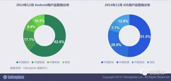 有意思的是Android用户更倾向于选择中国移动,iOS用户选择中国联通的比例高于Android。