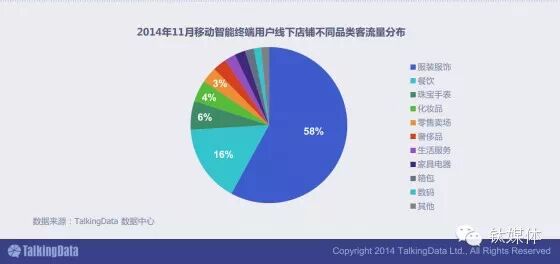 从客流分布来讲,服装服饰类依然是用户在线下购买的主要场所,其次是餐饮,还有珠宝、化妆品等等一系列的东西。
