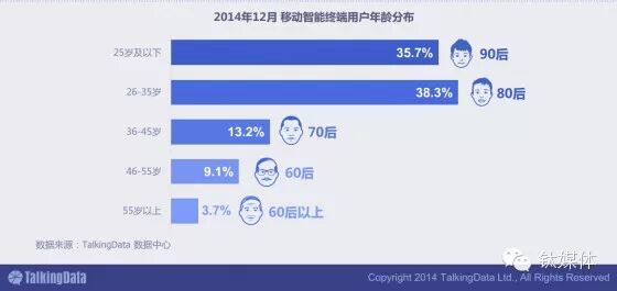 移动互联网已经是年轻人的天下,80后、90后甚至可能更年轻的用户,已经绝对占到主流,基本上已经有3/4的用户是80后以后的用户。