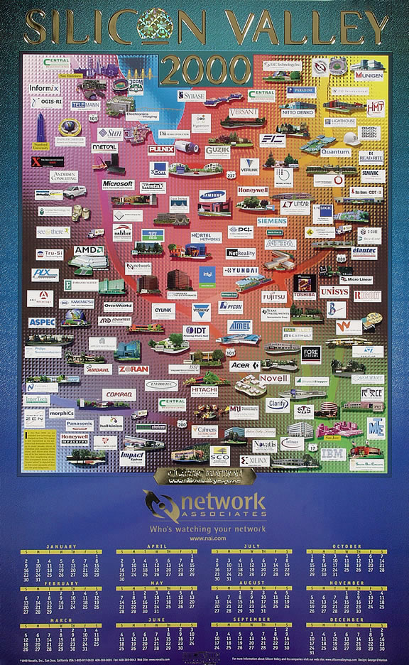 比如说,在十五年前也就是2000年的硅谷科技地图上,我们第一眼看到的是这样几个牌子:Nortel、AMD、Honeywell、Hyundai、Simens、Fujitsu、Sun......