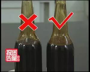 制作毛发水酱油必须添加大量色素和增稠剂,所以,我们可以通过一个简单的方法鉴别它们。将酱油瓶倾斜或倒立,然后再把瓶子放正直立。如果是毛发水酱油,就会粘在瓶壁上,留下一片黑色的污垢,半天都流不干净。这样的酱油,您可千万别把它买回家。