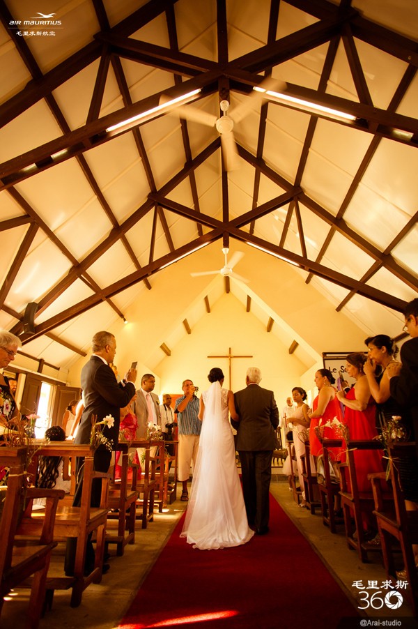法国人建造的红顶教堂(圣母院)是游客到毛里求斯的必游地。香港明星陈小春和应采儿便是在此举办婚礼。