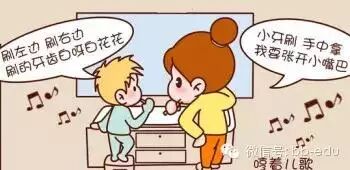 12.陪着熊孩子刷牙,百般哄、逗,才认真地刷上一会……