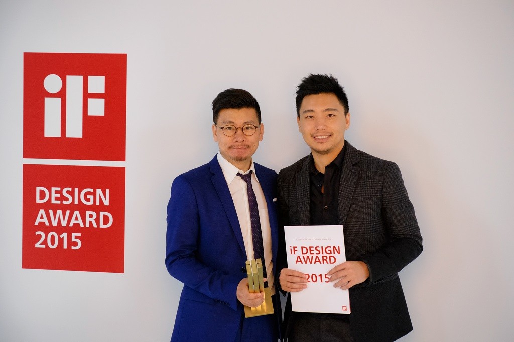 锤子科技工业设计副总裁李剑叶和Ammunition设计师舒宣在2015 iF设计奖颁奖仪式上