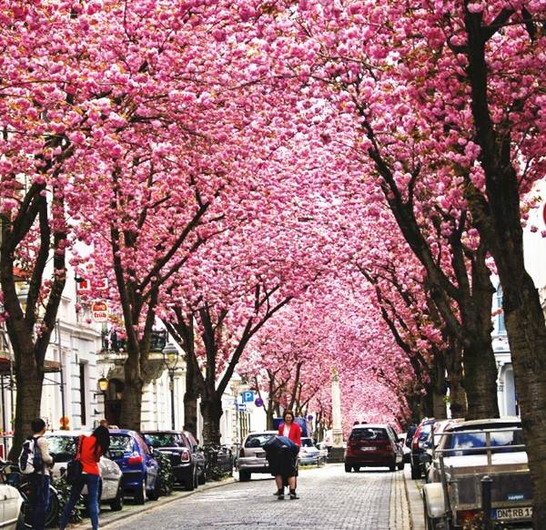 你 以为只有亚洲才能看到樱花?你肯定想象不到盛开的樱花在欧洲是怎样的浪漫文艺。每年的4月底到5月初,是波恩最美的季节,人们仰慕来到樱花大道,就为了一 睹粉嫩樱花簇拥的芳容。道路两边的樱花迎春怒放,形成一种有别于樱花之国日本的独特景观,少了一丝禅意,却多了一缕欧式的惬意情怀!