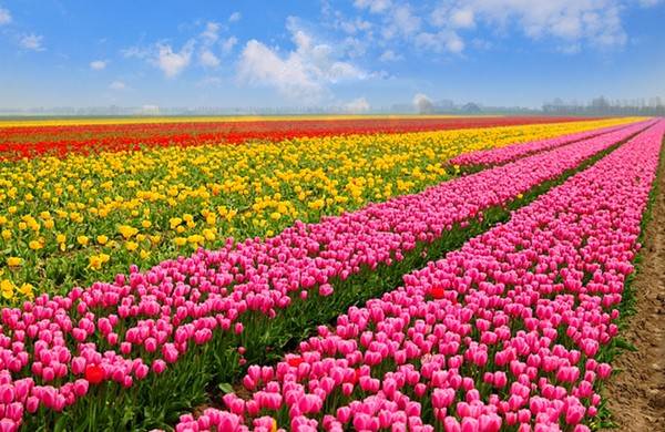 在和煦的春风中,骑着自行车穿梭在巨大的郁金香花海里,是不是超级田园风?这种画面只有在荷兰才能亲身感受到哟!每年的3月末到5月初是荷兰郁金香花季,大片大片的郁金香花田开满了荷兰的田间地头,城市的每一个街心花园,甚至家家户户的阳台间……爱花的你,怎可错过!