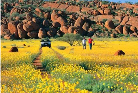 春天到珀斯,最可以见识到西澳人的浪漫和闲情,遍地野花构成一幅叫人眼花缭乱的图景。公园里满园春色,处处可见姹紫嫣红的野生雏菊,西澳的野花不见跋扈的大红大紫,淡淡的,粉粉的色彩,却怡然挥洒成漫山遍野的妩媚。