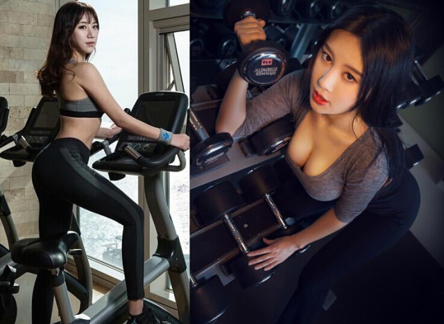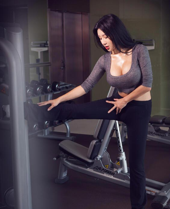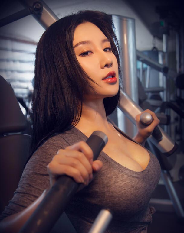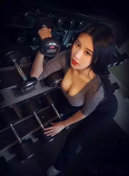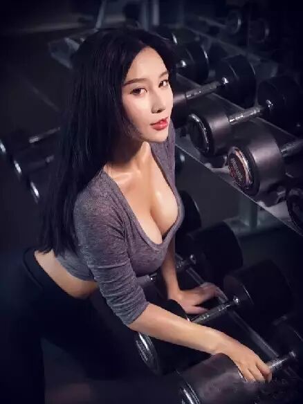 健身房中的中国美女烈焰红唇,双臂撑开挺胸时的视觉冲击力毋庸置疑。