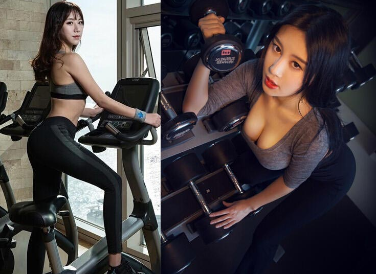 长腿、翘臀,动感单车上的韩国美女姣好身材惹人羡,瓜子脸型配上一头深棕色卷发尽显女神本色。