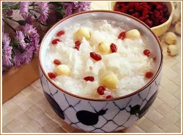 银耳性平、味甘淡,有滋阴、润肺、养胃、生津、益气、补脑、强心之功效。不但适宜于一切妇孺、病后体虚者,且对女性具有很好的嫩肤美容功效。莲子性平、 味甘涩,有益心、补肾、止泻、固精、安神之效。银耳莲子糖羹有较强的滋补健身功能,是传统的润肤养颜佳品,还能帮助有效降肝火,平衡分泌。
