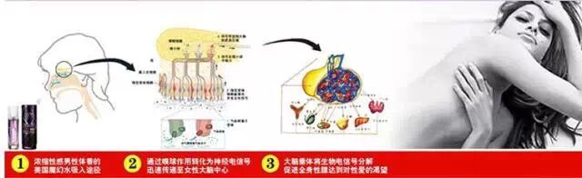 费洛蒙,又名佛罗蒙,是所有昆虫、动物和人类所能分泌的一种化合物,当费洛蒙分泌时,就会产生吸引异性的效果并可能提高产生性行为的几率,人类只有在出汗的时候才会分泌少量的费洛蒙,且维持时间很短,而出汗时却不适合于异性会面。现代科学家研究出了费洛蒙,携带一点高浓度的费洛蒙在身上可能维持到8个小时以上,人体的鼻部组织中存在着称谓犁鼻器的特殊结构组织,其功能是感觉与异性相关的生理信息,帮助我们嗅到异性散发的费洛蒙信息素,当这种信息素被人体察觉后会刺激大脑相关的情感皮层和神经兴奋中枢,并给大脑神经中枢送去一个信号,一个吸引的,充满异性神秘气息的信号,因而使人对异性产生迷恋般的好感,不由自主地被吸引.......