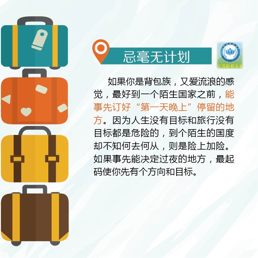 刘墉先生的女儿是一个热爱旅行的女青年,曾只身周游十几个国家。在女儿出发时,刘墉先生写了一些旅行中的禁忌。文章分行前、到达、旅馆、街头四章,本文分享的是第二章。寒假到了,爱旅行的小伙伴早已按捺不住内心的躁动,要来一场“说走就走的旅行”,出发前不妨看看这篇非“常规”的旅行攻略吧!