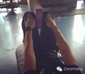 然后双手直放在大腿上,做仰卧起坐,每个起坐必须要做到手掌心要覆盖到膝盖!