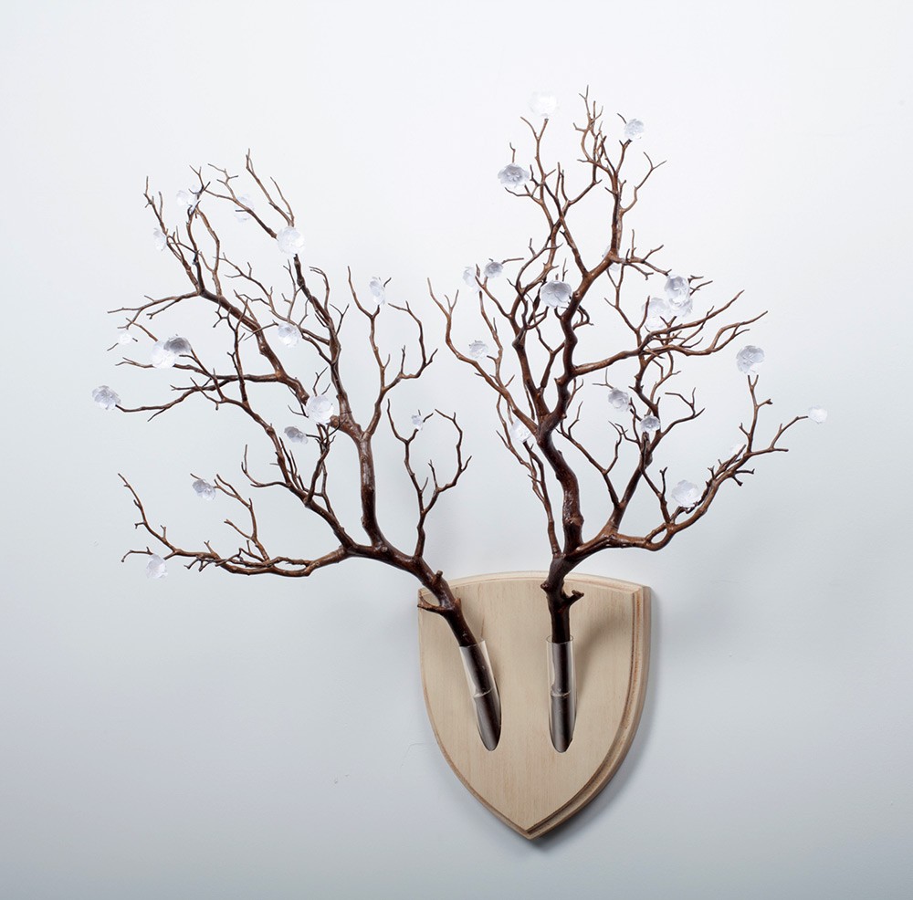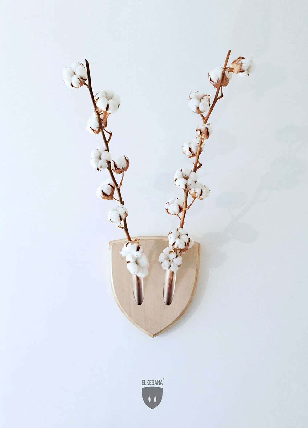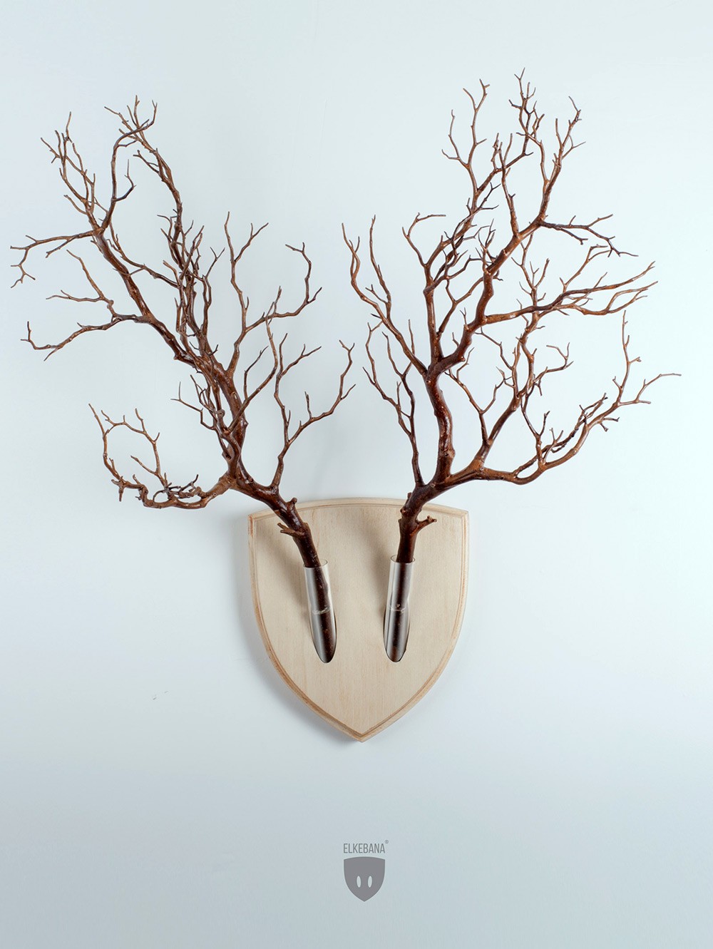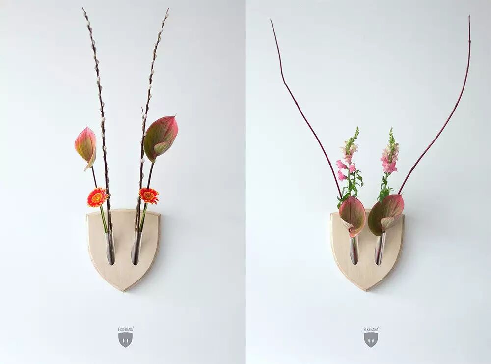墙上鹿头标本是主人带着血腥味的功勋,不想再要屠杀的纪念品,只想要生生不息的美丽。Elkebana设计出的墙上花瓶灵感就来自鹿头标本,盛放的鲜花替代了死气沉沉的鹿角,成为绝妙的家居装饰。