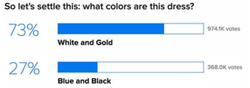 国外网站做了调查,其中“白色+金色”的网友占到了75%,共有97.4万人。剩下36.8万人(25%)则是蓝黑党。