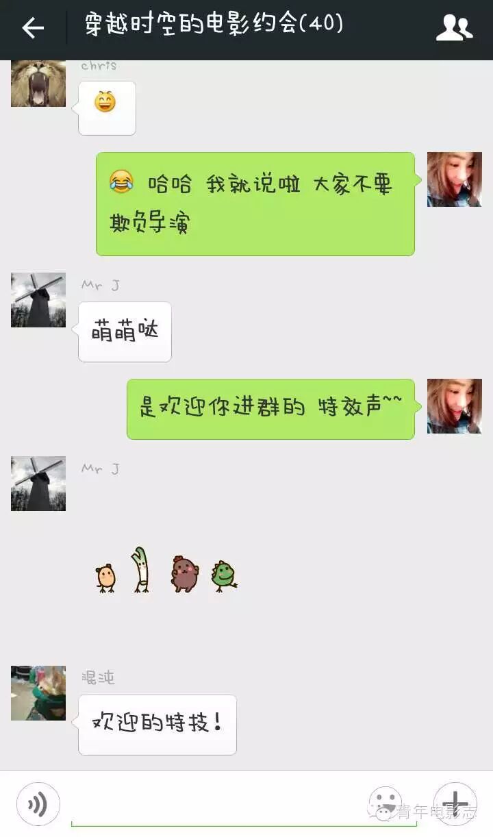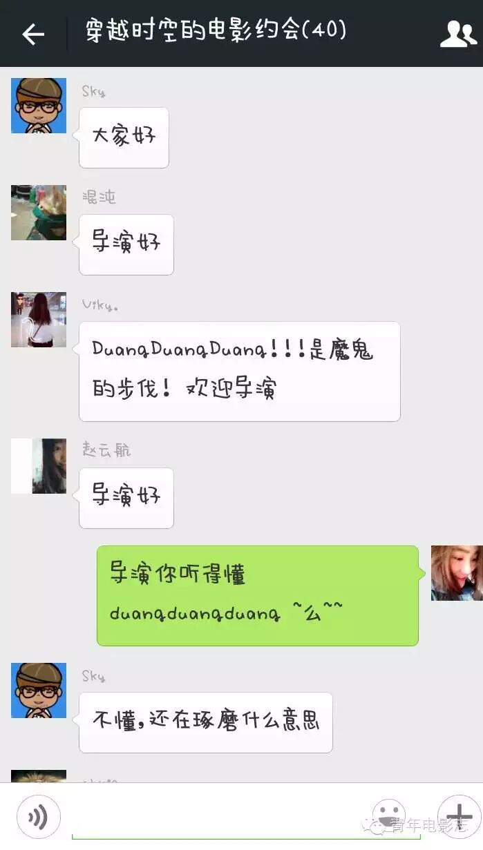 值得爆料给大家的是,导演已经在美国生活十多年,对于国内网络流行语不太了解,记得小编刚和导演接触唠嗑,导演经常会蹦出“哦”,“呵呵”这样的词!你懂的!后来萌萌哒导演还让小编教他“呵呵”是什么意思~所以导演刚进群,就出现了下面的情景。