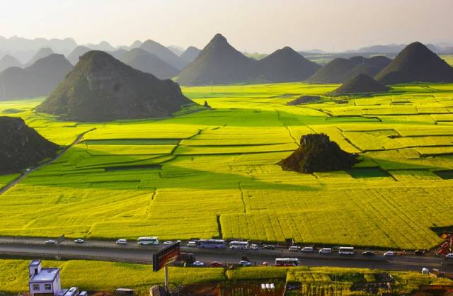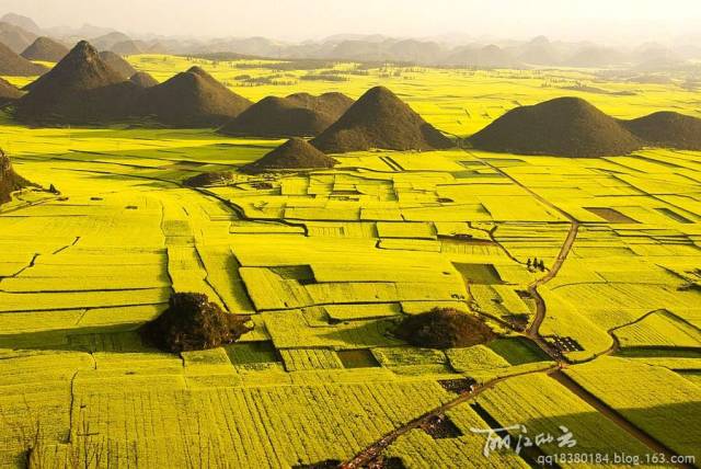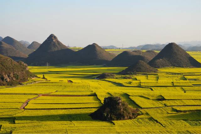 罗平是我国的油菜生产基地县,也是蜜蜂春繁和蜂产品加工基地。每年2、3月份,20万亩油菜花在罗平坝子竞相争放,每年的春节过后,罗平坝子便是油菜花的金色海洋。