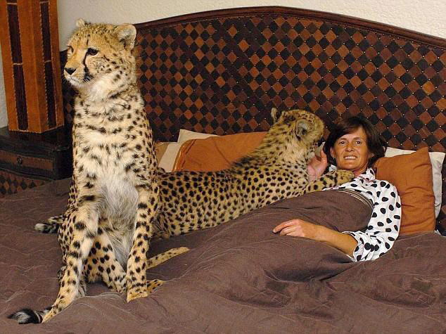 南非一名女子爱动物爱得发狂和猎豹同床共枕