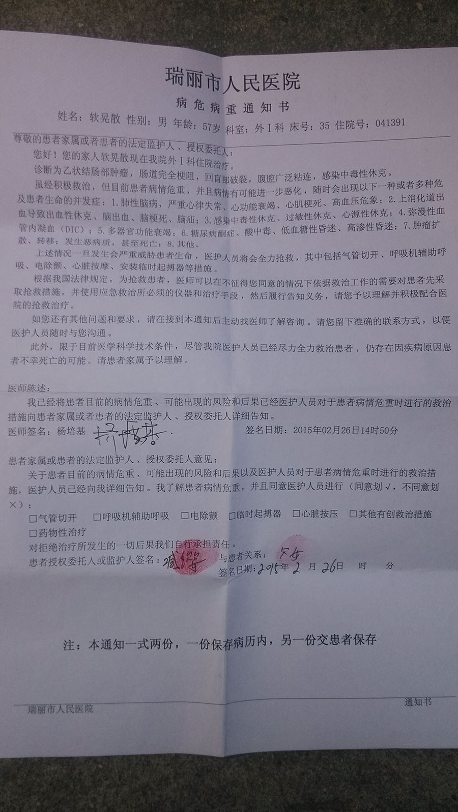以下是在病房拍到的相关图片和病情证明书、病危病重通知书!
