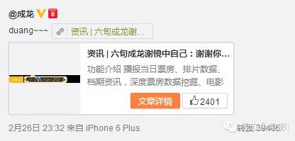 成龙转发微博时用“duang”自嘲,不少网友因此“路人转粉”!