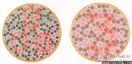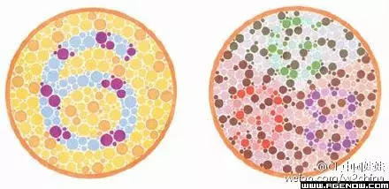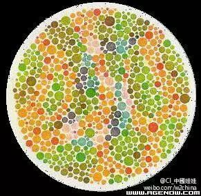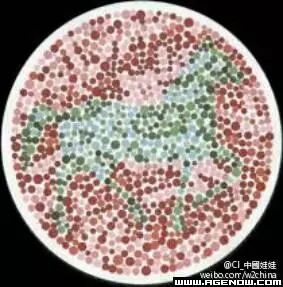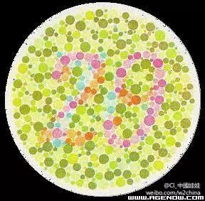 测试完了么?答案(1)不能辨认69者,红绿色盲(2)后一幅图中不能看出3者,红色弱 (3)正常色觉应是29,色盲者看到应该是70 (4)正常色觉看不到任何数字, 而色盲者很容易看出是5 (5)正常色觉的人看到的应该是26 (6)如果图形中看到是“鹿”的话,很遗憾你是色盲者。