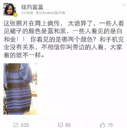 这个裙子蓝黑还是白金 ,外网还请了医生做了实验,结论是原色是蓝黑,能看出蓝黑的都是好眼,对光敏感,没事别瞅太阳。。要好好珍惜。看出白金色的如我。。。眼不太卓越。。