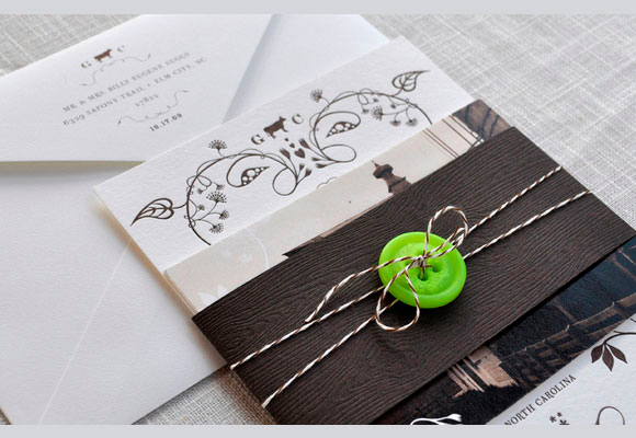 淡雅的颜色,简单排版,加上一点巧妙的手工,这样一张简单而大方的请柬绝对是婚礼的好选择,更能看出主人用心~