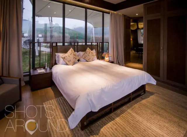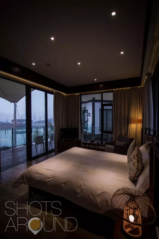 帐篷与射手的情缘其实还源于多年前深秋的库布其沙漠穿越之旅,其间两晚宿于蒙古包内,彼时莽莽荒漠夜观繁星的震撼与帐篷内火炕上一群大老爷们围着仅有的一个户外煤气炉煮茶、光着膀子聊天的野趣,至今难忘。安吉帐篷客虽无北境荒漠之苍茫粗犷,但私享白茶第一乡灵秀山谷之万亩茶园的体验也绝对更清新脱俗。如意湖畔错落有致的寥寥数顶白色帐篷宛若葱翠茶谷间一谱音符,完美地融于山水之间,更添几分江南的韵致。比之Aman、Four Seasons等逼格满满的帐篷们,帐篷客的帐篷之用料虽现代痕迹略重了些,更似别致清新之田园宅院,不过其270o落地玻璃的开放景致让人即使居于室内也仿若憩于茶园间。于满眼绿意中枕着茶香入眠,这才是回归自然的真义吧。最让射手敬佩之处在于,帐篷客的帐篷们对于环境的保护也是做足了功课,所有帐篷都是离地而建,每一顶帐篷都拥有独立的水循环系统及地暖系统,保证轻奢舒适、避免硬化土地的同时,还将能耗降到了最低,让帐篷与生态茶园真正和谐的共生,这点上帐篷客做得丝毫不逊于那些国际大腕们。